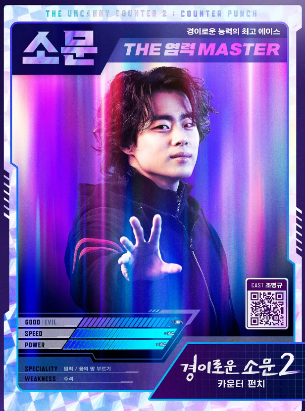 ![]() 소문 (조병규) “아이 캔 두잇, 위 캔 두잇! 전 악귀도 잡고 우리 모두도 지킬 거예요” ‘땅’을 부르는 능력을 갖춘, 매 순간 그 한계를 뛰어넘는 그야말로 경이로운 카운터. 부쩍 길어진 머리를 흩날리며 악귀를 쫓는 스무 살의 소문은- 한쪽 다리를 절던, 일진의 괴롭힘을 받던 고딩 시절의 소문과는 180도 다른 모습이다. 땅을 자유자재로 컨트롤 하는 건 물론, 어느새 더욱 강력해진 염력을 지닌 소문은 다른 카운터들의 염력 훈련까지 도맡아 하고 있다. 여전히 달라지지 않은 게 있다면, 불의를 눈감는 법이 없다는 것? 친구들을 괴롭히는 일진을 두고 보지 못했던 고딩 소문처럼, 스무 살의 소문 역시 약한 사람, 좋은 사람 괴롭히는 인간들을 지나치지 못한다. 소문을 누가 말릴까. 이 옳은 일을 행하려는 청년을. 여전히 소문은 믿는다. 그저 소문이 할 수 있는 일을 해낸다면, 적어도 소문을 만난 사람들의 삶이 조금은 나아지리라고.. 그렇게 점점 더 지켜야 할 사람들이 많아진 소문에게 드리운- 점점 더 강력한 악귀들의 그림자! “괜찮아요.. 어떤 놈들이 나타난다고 해도.. 놈들이 강해지는 만큼, 우리도 강해질 거니까.” 반드시 모두를 지키겠다 결심하는 소문이지만, 한편으론 두렵기도 하다. 혹시나 만약.. 악귀가 나보다 강하다면? 능력만큼이나 책임과 부담은 무거워지는 소문인데... 하지만 그런 소문의 곁을 언제나 지키는 건 든든한 동료들! 그래, 혼자만의 싸움이 아니다. 모두와 함께라면- 이제 그 어떤 악귀도 두렵지 않다. 모두와 함께라면- 어떻게든 소중한 사람들을 지켜낼 수 있으리라 믿는 소문. 그런데 순간, 선과 악의 경계가 무너져내렸다. 지키고 싶은 소중한 사람과 맞서 싸워야 할 악귀의 경계가 무너져버렸다. 지금 소문 앞을 가로막는 건- 한때는 그의 은인이자 영웅이었던 마주석이다. 옥상에서 떨어질 뻔한 소문의 외조모를 자신의 몸을 던져 구해냈던 마주석. 사기 사건으로 모든 것을 잃은 마주석은 분노로 인해 완전히 변해버리고... 모두를 구하겠다는 신념, 주석에게 선한 내면이 아직 남아있을 거라는 희망은.. 과연 지켜질 수 있을까? 믿을 수 없는 현실을 받아들여야만 하는 소문.. 계속되는 좌절 속에서 불안은 더욱 커지지만.. 그러나 소문은 이미 알고 있다. 포기하지 않는다면.. 언젠가 기적이 오리라는 것. 소문은 이번에도 반드시.. 기적을 만들 것이다. |