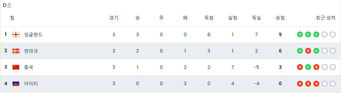 D조 중국 1:6 잉글랜드