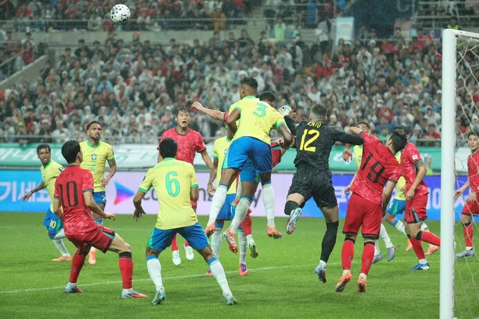브라질은 경기 초반부터 빠른 템포와 날카로운 돌파로 한국 수비진을 흔들었다. 전반 13분, 이스테방이 첫 골을 기록하자 한국은 흔들렸다. 이후에도 브라질은 개인기와 패스 연계, 측면 전환 등을 활용해 공격 화력을 지속적으로 펼쳤다.