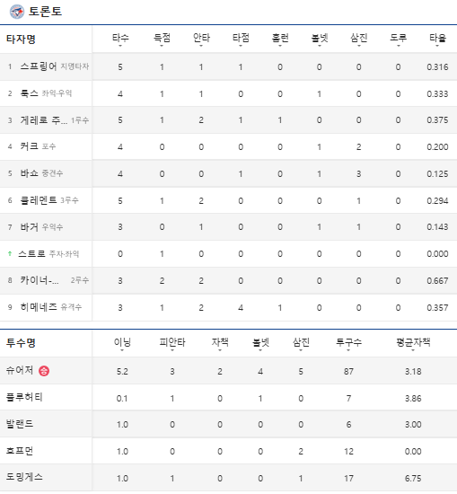 이후 7회에도 토론토는 적시타로 점수를 추가하며 6-2까지 달아났고,