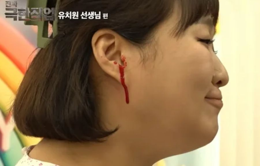 끝없는 민원을 듣다가 이민지 교사의 귀에서 피가 철철 흐르는 분장이 나오는데, 이 장면에서 저는 웃다가 멈추고 말았어요. "아, 이게 코미디인데 왜 이렇게 마음이 아프지?"라는 생각이 들더라고요.
