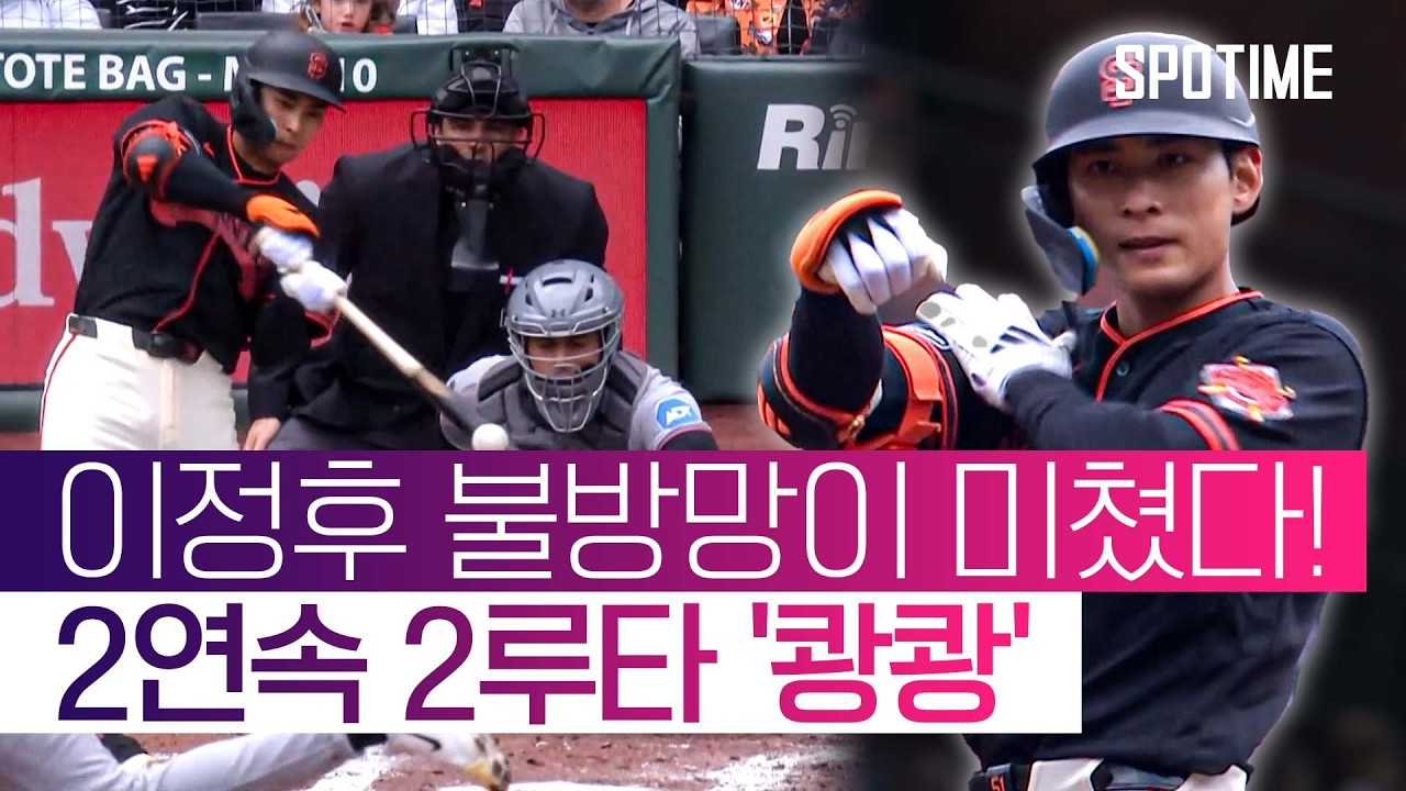 이정후의 전날 시즌 2호 홈런은 맥코비 코브(오라클파크 우측 바다)에 빠지는 '스플래시 히트'에 몇 인치 차이로 실패했다고 해요. 아쉽지만 그만큼 장타력이 살아나고 있다는 증거죠! 최근 14경기 타율 .404로 완전히 부활한 모습이에요.