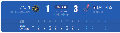 만약 브루어스가 반격에 성공한다면 이야기거리가 되겠지만, 현재 흐름상 다저스가 유리한 위치에 있습니다.
