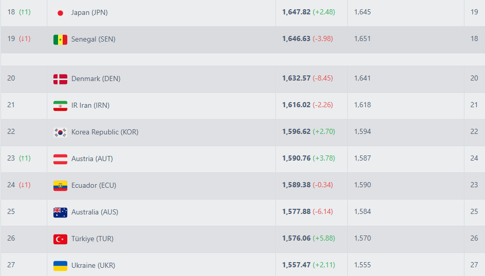 ✔️ 이유 1) 한국이 지더라도 2~3계단이 한꺼번에 하락하는 일은 거의 없다